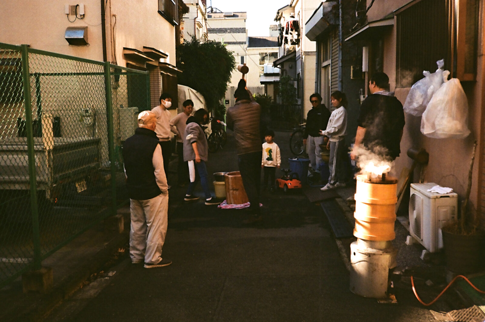 商店街の脇では餅つき。