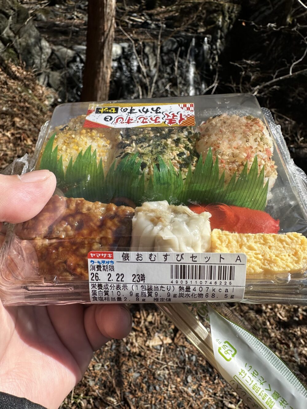 本日のランチは、奥多摩駅前の弁当屋で手作り弁当を購入し、さらに近所の名物精肉店で自慢のコロッケやメンチを買い、野点でお茶と味噌汁をいただこう、という素敵なプランだった。しかし、それらはことごとく吹き飛び、実に残念な零細コンビニで購入した質素な弁当とカップ麺でお茶を濁す羽目となった。それでも、ロケーション選びに成功したおかげで、実に満足のいく食事となった。