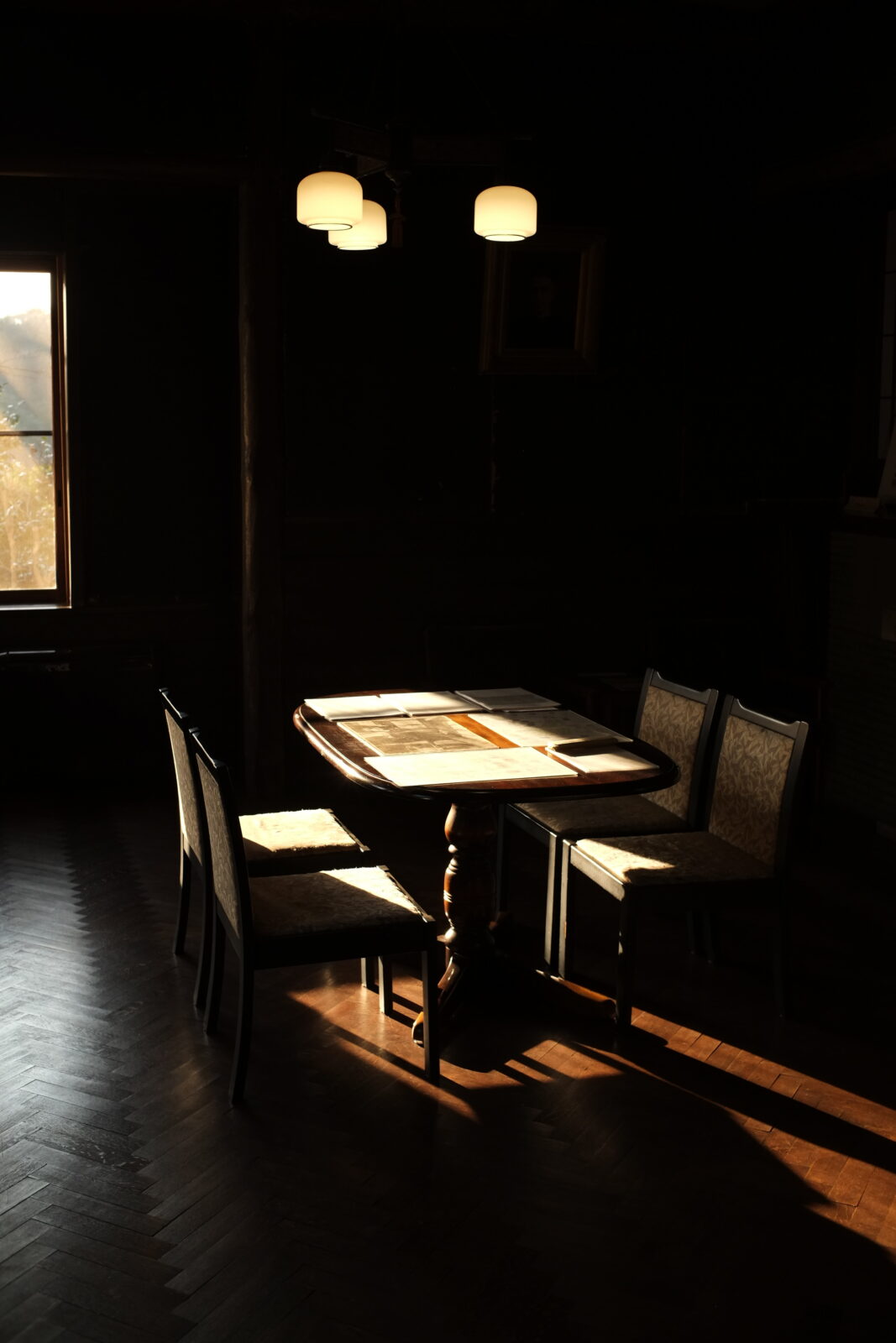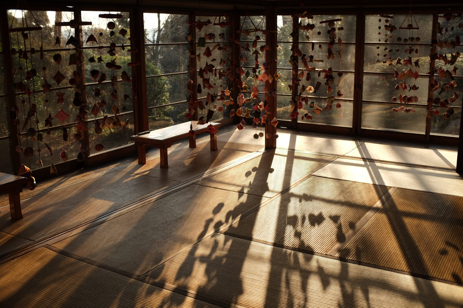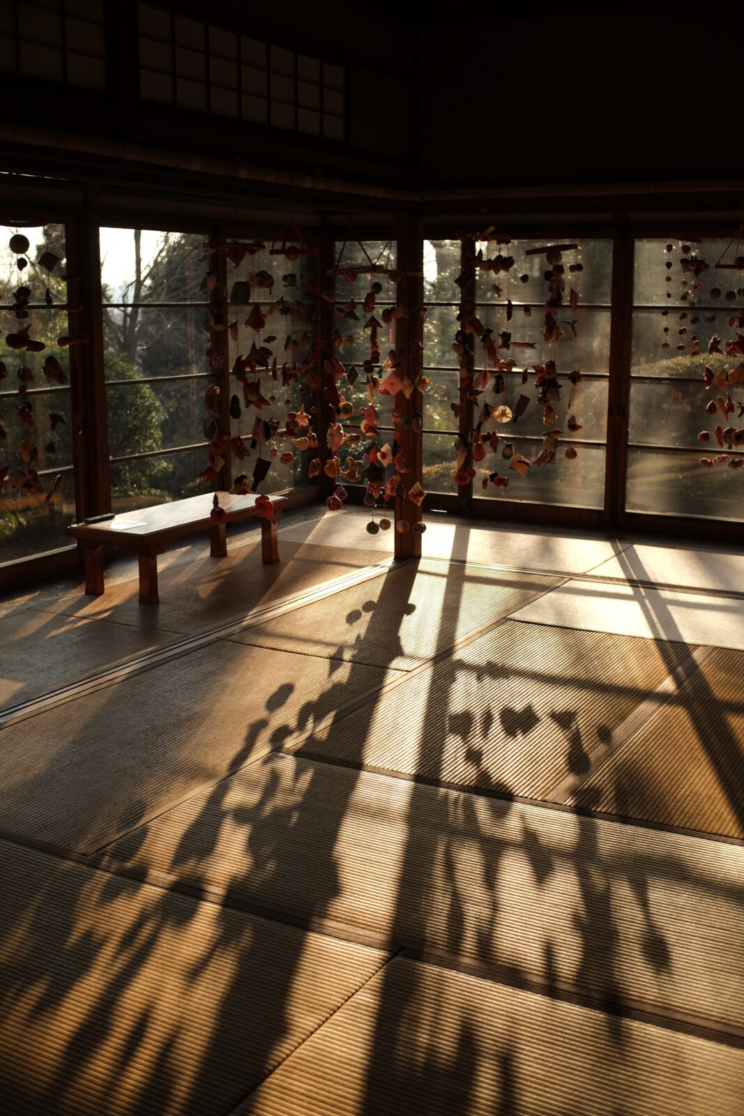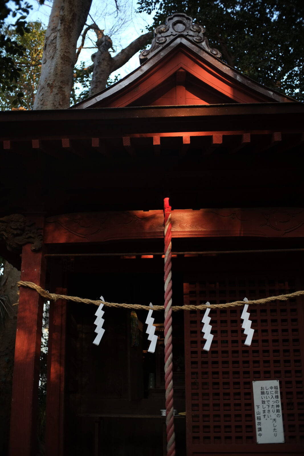 社の夕日が射す