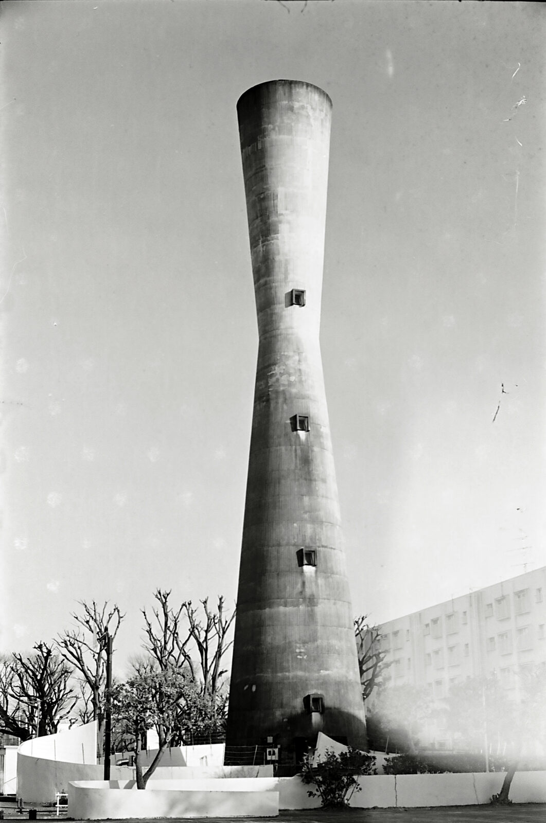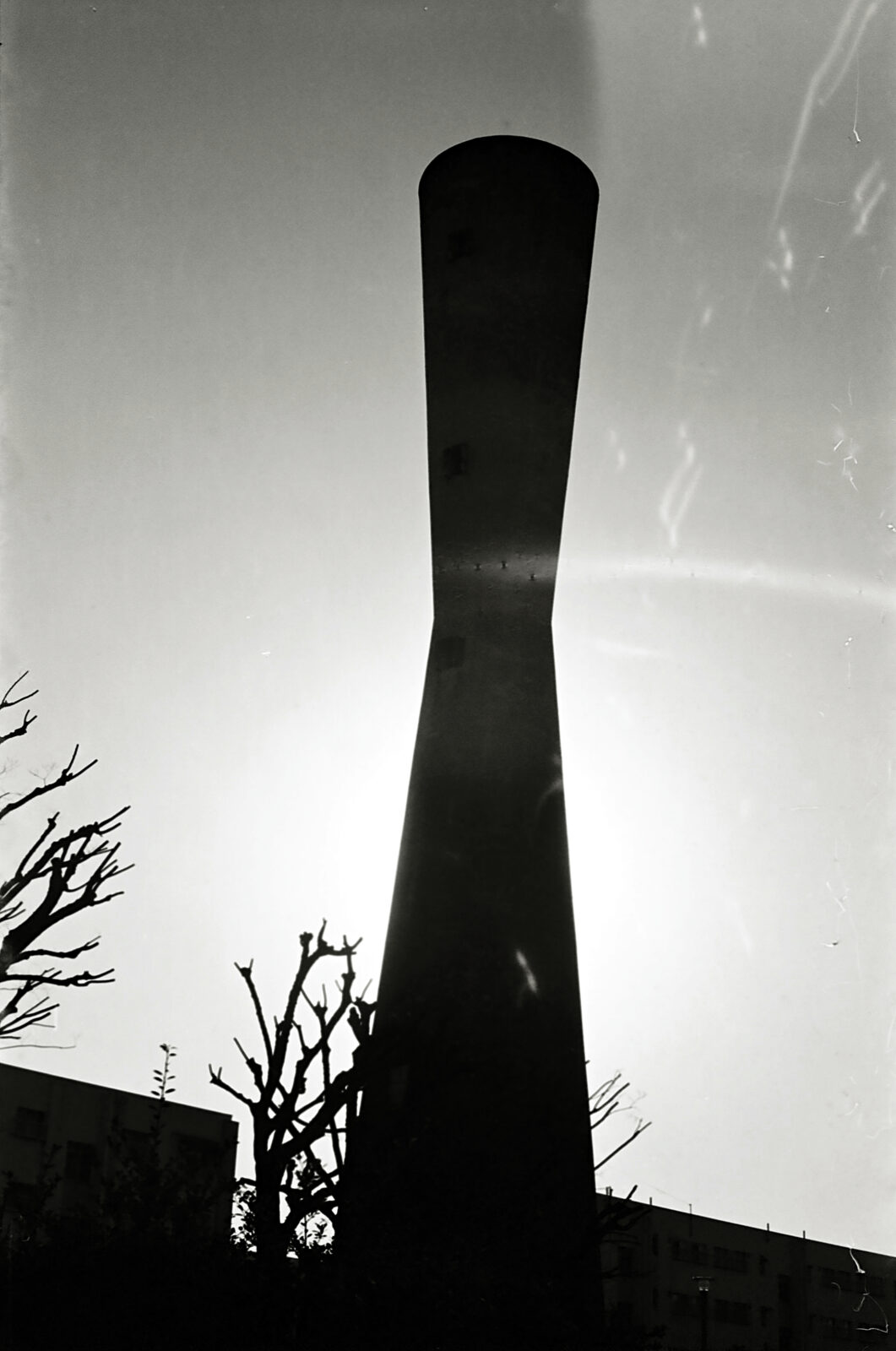 給水塔のショットも暗袋の中での引き出しで若干キズついている。